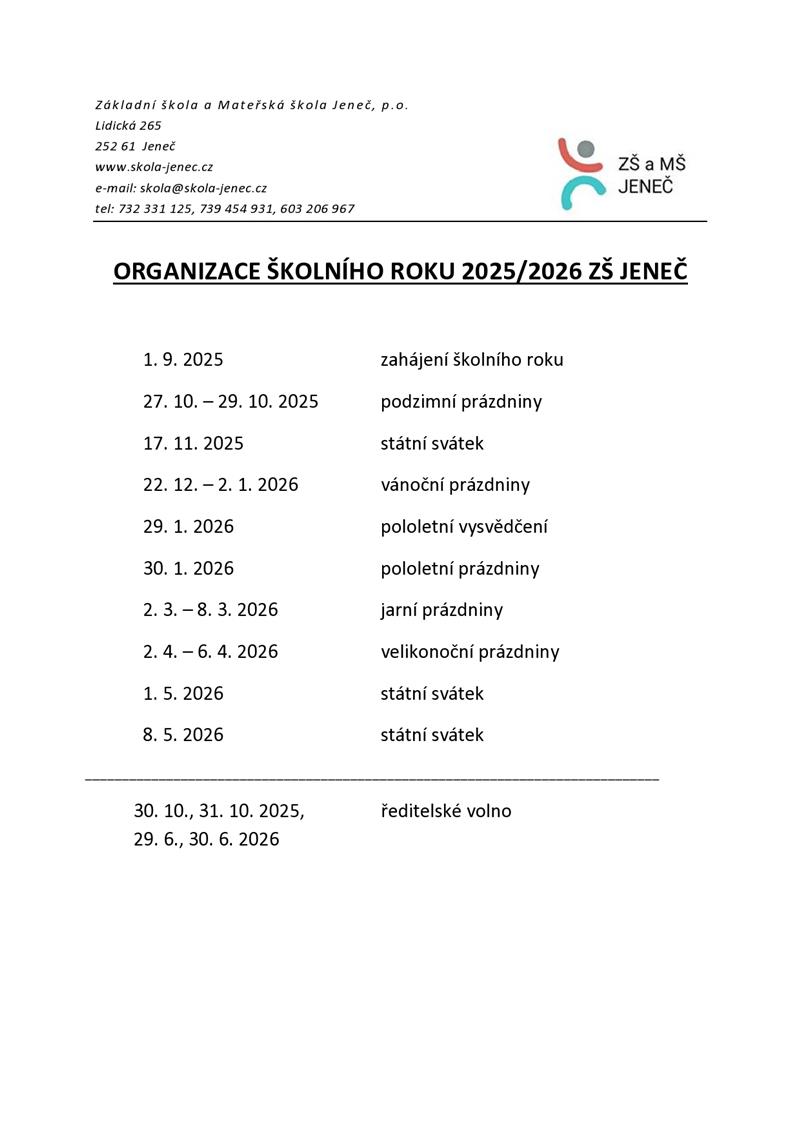 Organizace školního roku 2025/2026